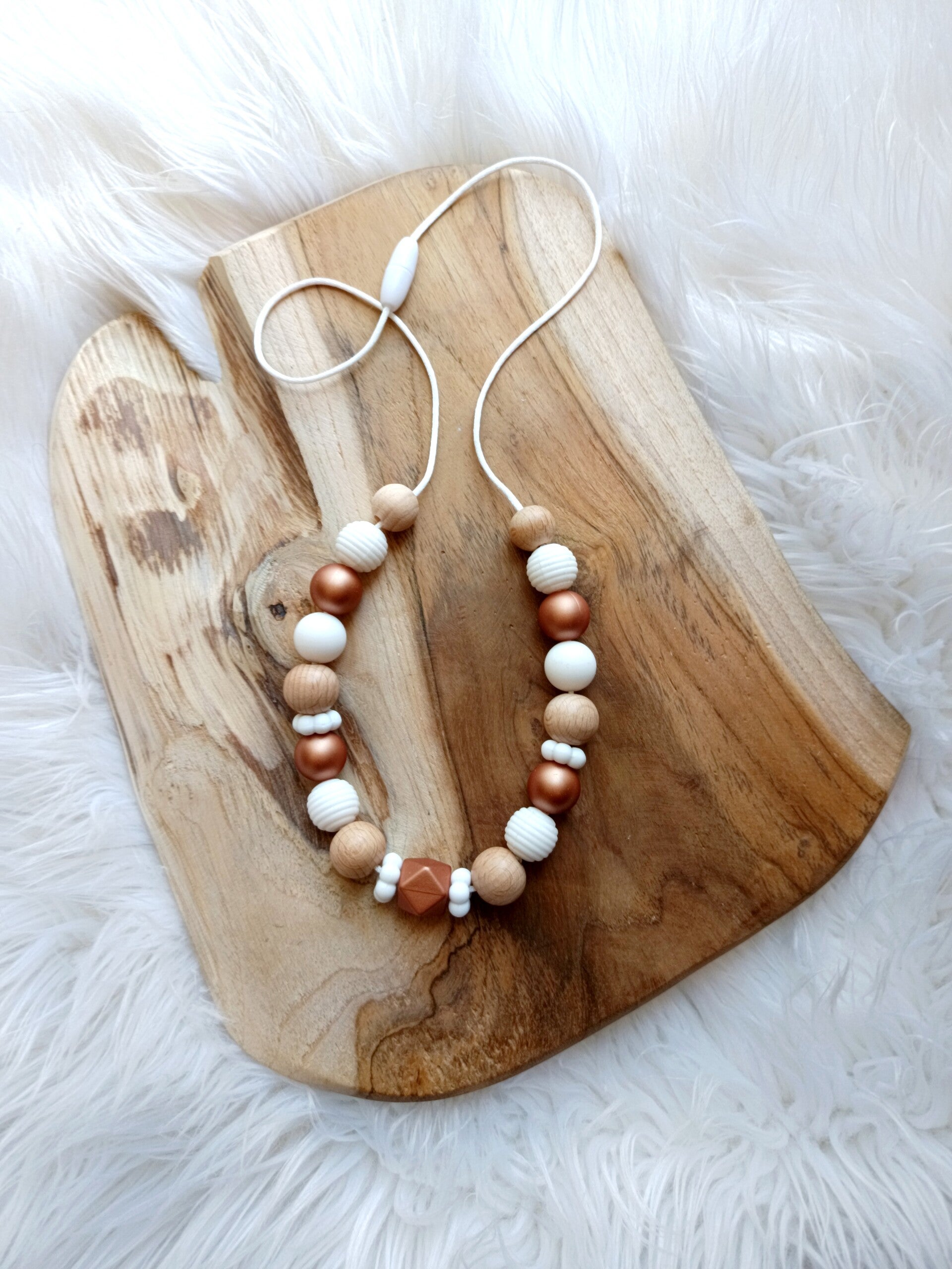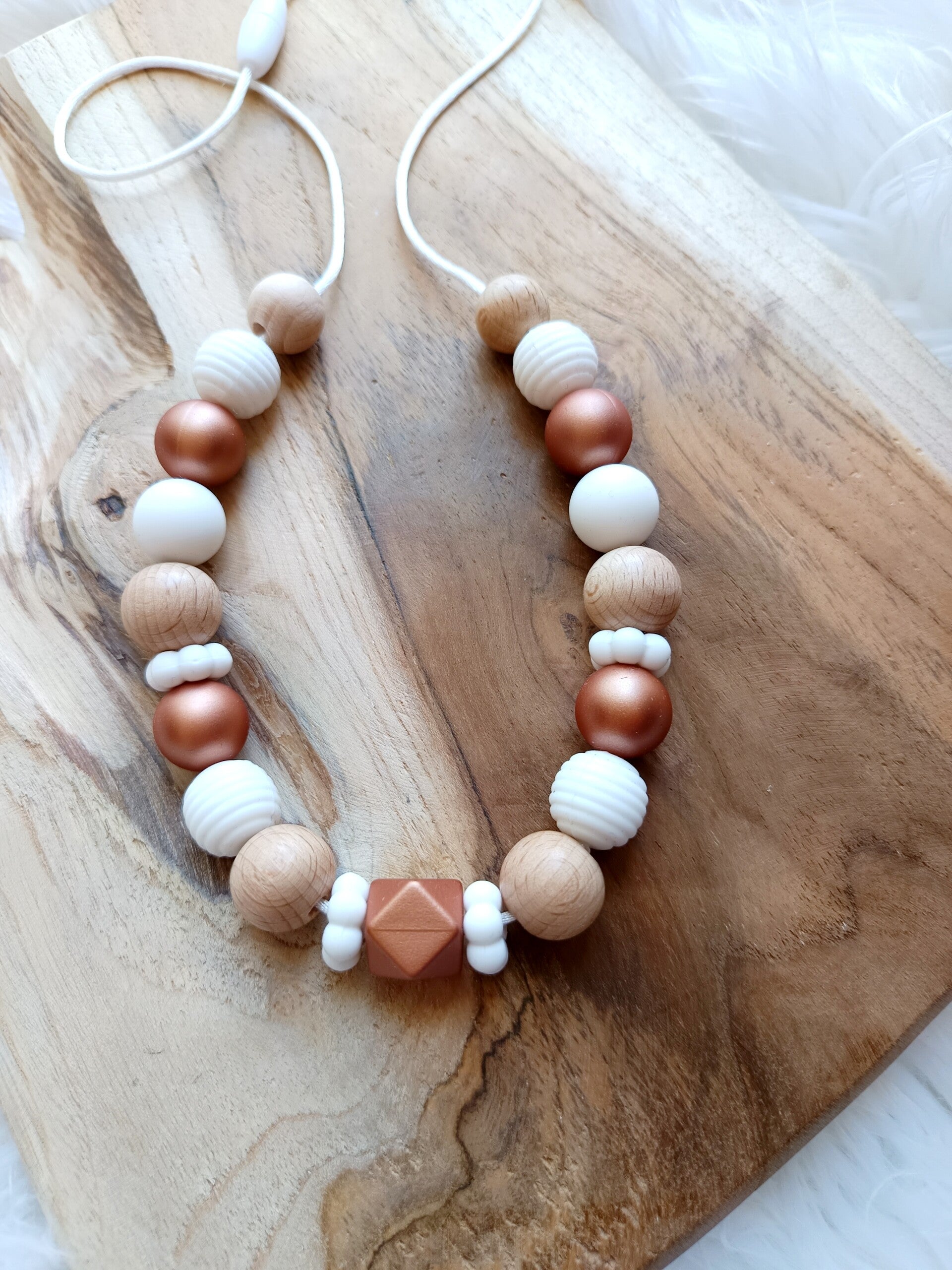 Aussi appelé collier de portage, il s'agit d'un collier que bébé peut tirer et mâchouiller.