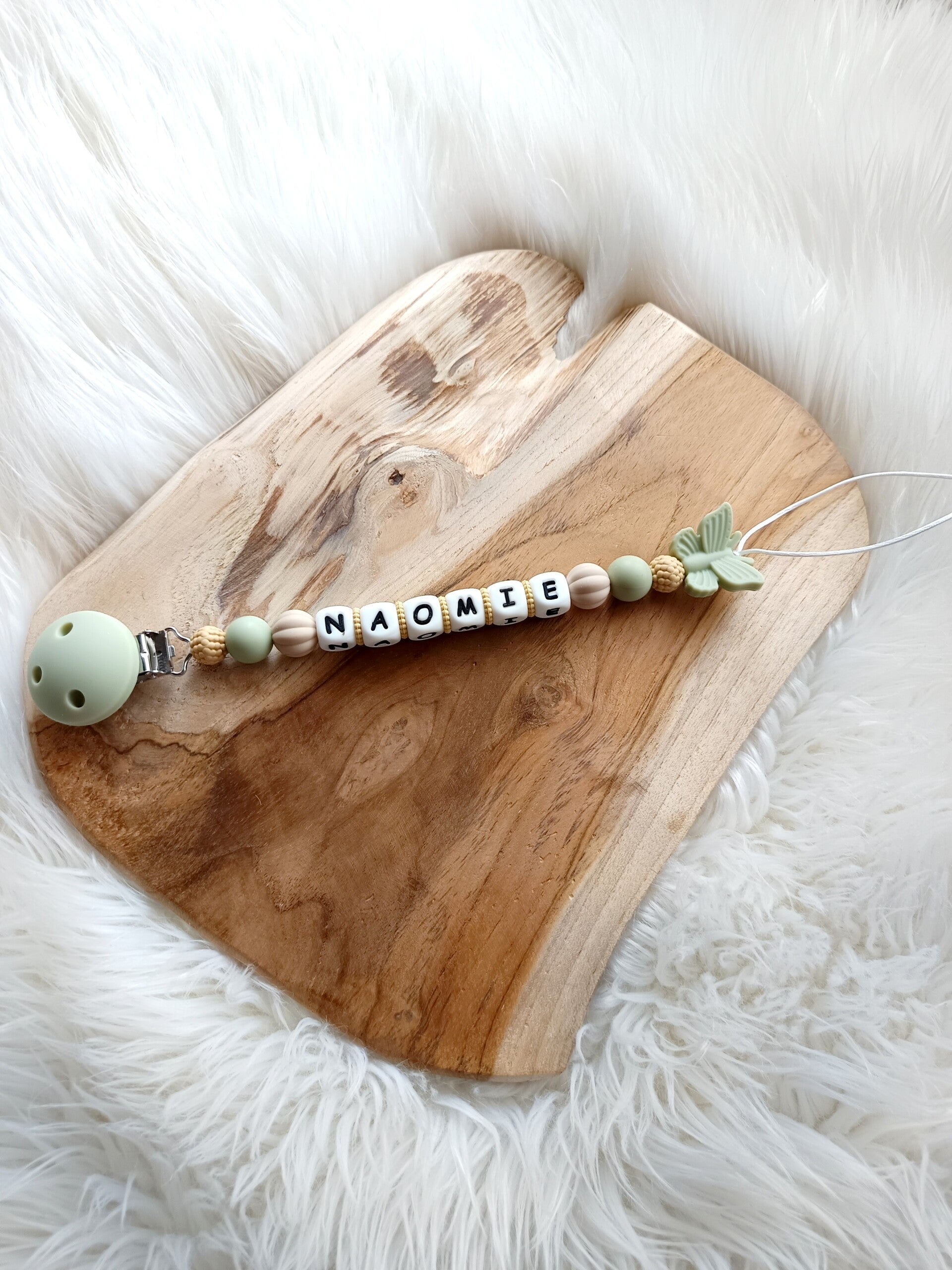 Nos attaches tétines sont personnalisables avec le prénoms de vos tout petits 💚