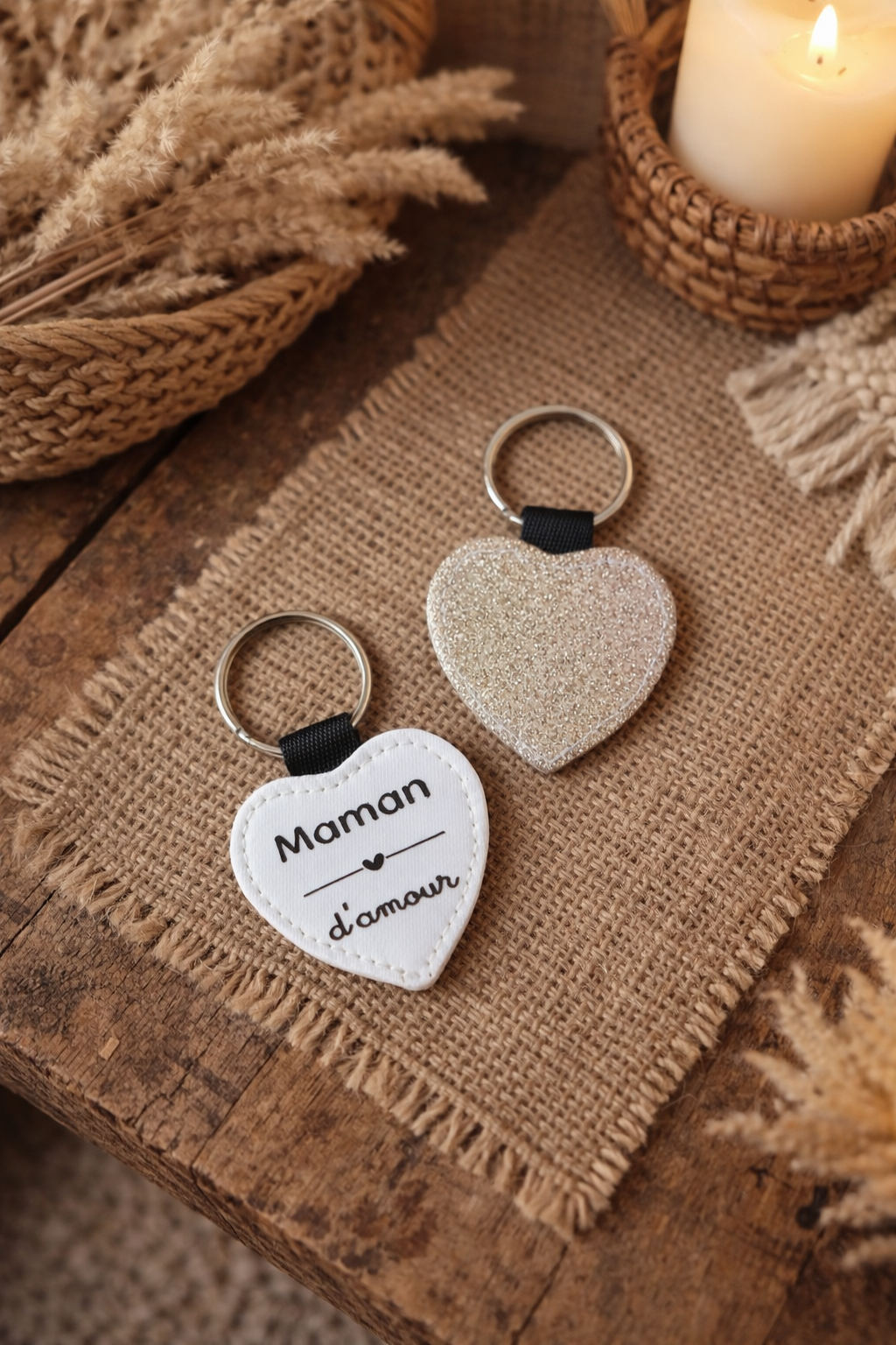 Porte clé cœur pailleté ‹ Maman d'amour ›