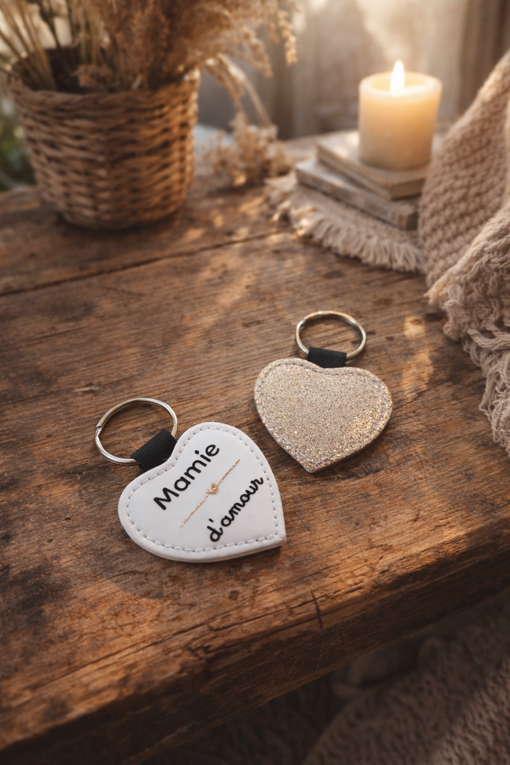 Porte clé cœur pailleté ‹ Mamie d'amour ›